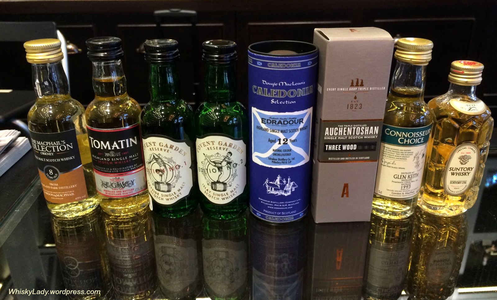After a bit of careful thought, Priscilla sprung into action and began pulling out a few… checking some possibilities that I declined… to come up with a diverse shortlist. My sampling companion arrived and we began our final selection process by “speed dating” each whisky with quick short nips.