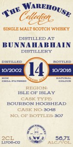 - Bunnahabhain 14 year (24 Oct 2002 / 31 Oct 2016) Bourbon Hogshead 3048, 56.7% – One of the best Bunna’s I’ve had in a long time!