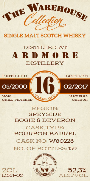 - Ardmore 16 year (May 2000 / Feb 2017) Bourbon Barrel 52.3% – A more traditional style, something for Après ski!