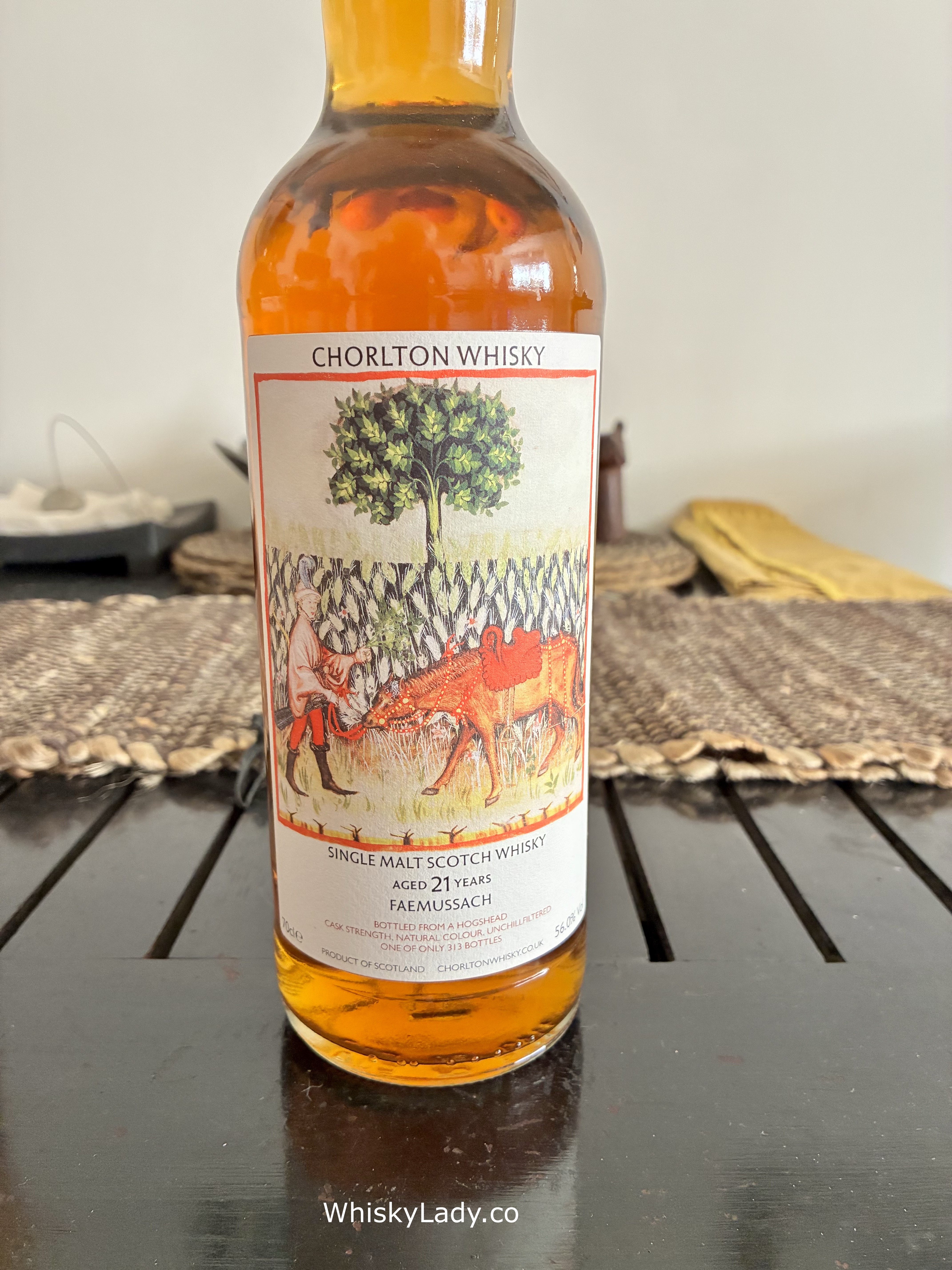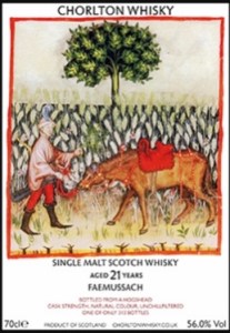 So, first up we have Faemussach 21-year-old. This is peated single malt from an undisclosed distillery, which I’m told (although I can’t prove anything!) was Benriach. The slight air of mystery also extends to the cask. The colour suggests sherry, but it could be an unusually active bourbon cask. A few people have tried this now and opinions have been divided.
