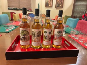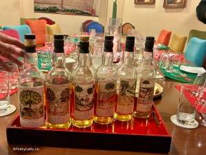 This was the most divisive dram of the night! It was bold with diverse elements co-existing – from fresh to umami, sweet to peat, floral perfumes to fish oil. It was very dynamic, and many of our flavour references were specifically Indian, often having no easily translatable equivalent. For example, the best description of the aroma was khus – with its distinctive green, earthy smell.