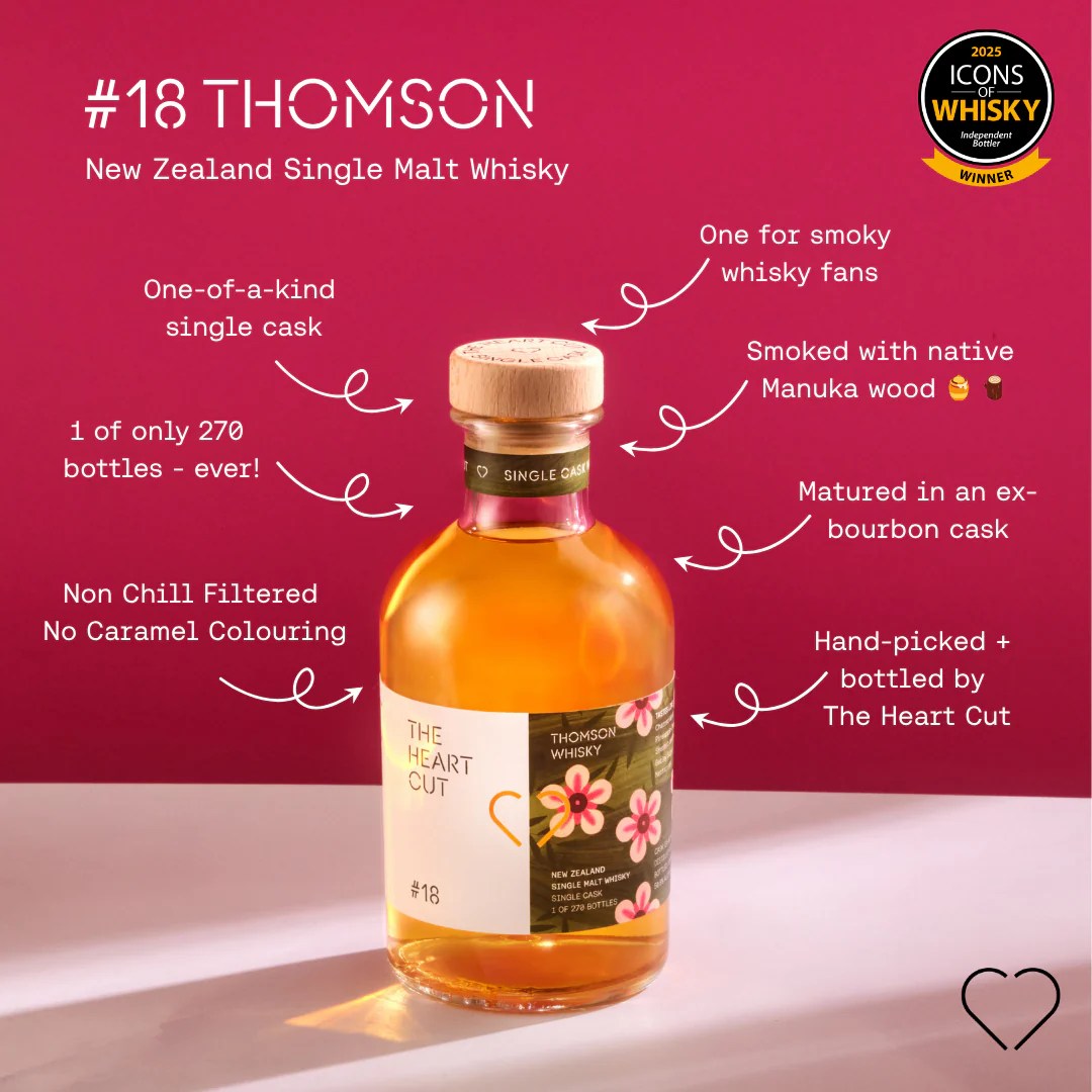 Sometimes a description draws you in… and this was clearly the case here. I’ll admit, I’m a bit partial to Thomson whisky. Rachael and Matthew Thomson have created a distinctly New Zealand set of expressions well worth exploring. To find out more, check out what the folks at The Heart Cut have to say about Thomson Distillery HERE.